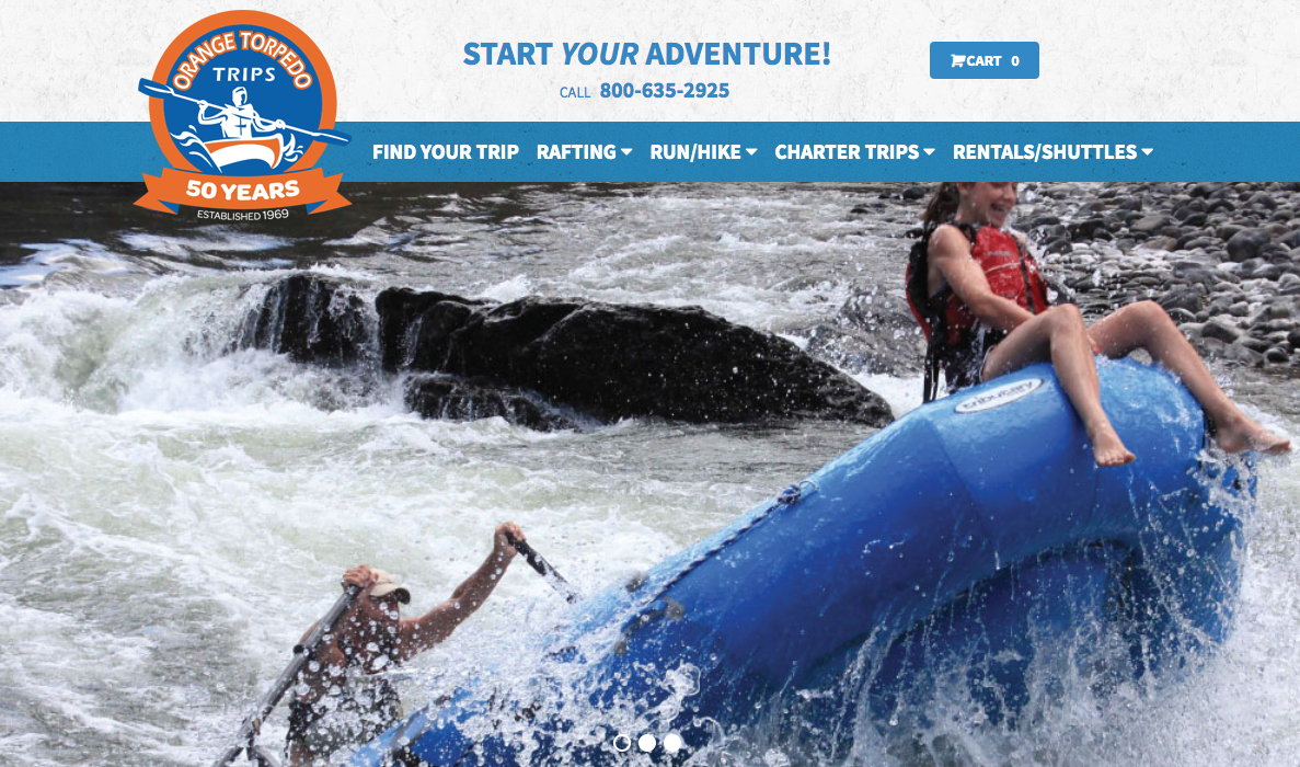Redesign of Orange Torpedo Trips website. Participated in reorganizing user experience. Created navigation to prioritize booking of rafting trips.