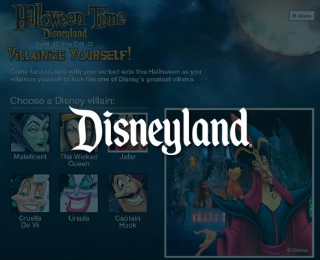The Villainize Facebook app was created for the Disneyland and Disneyworld Facebook pages. Users could “Villainize” themselves by selecting their favorite Disney villain and their favorite location as the background, and then upload a photo of themselves to create a custom animation starring them.